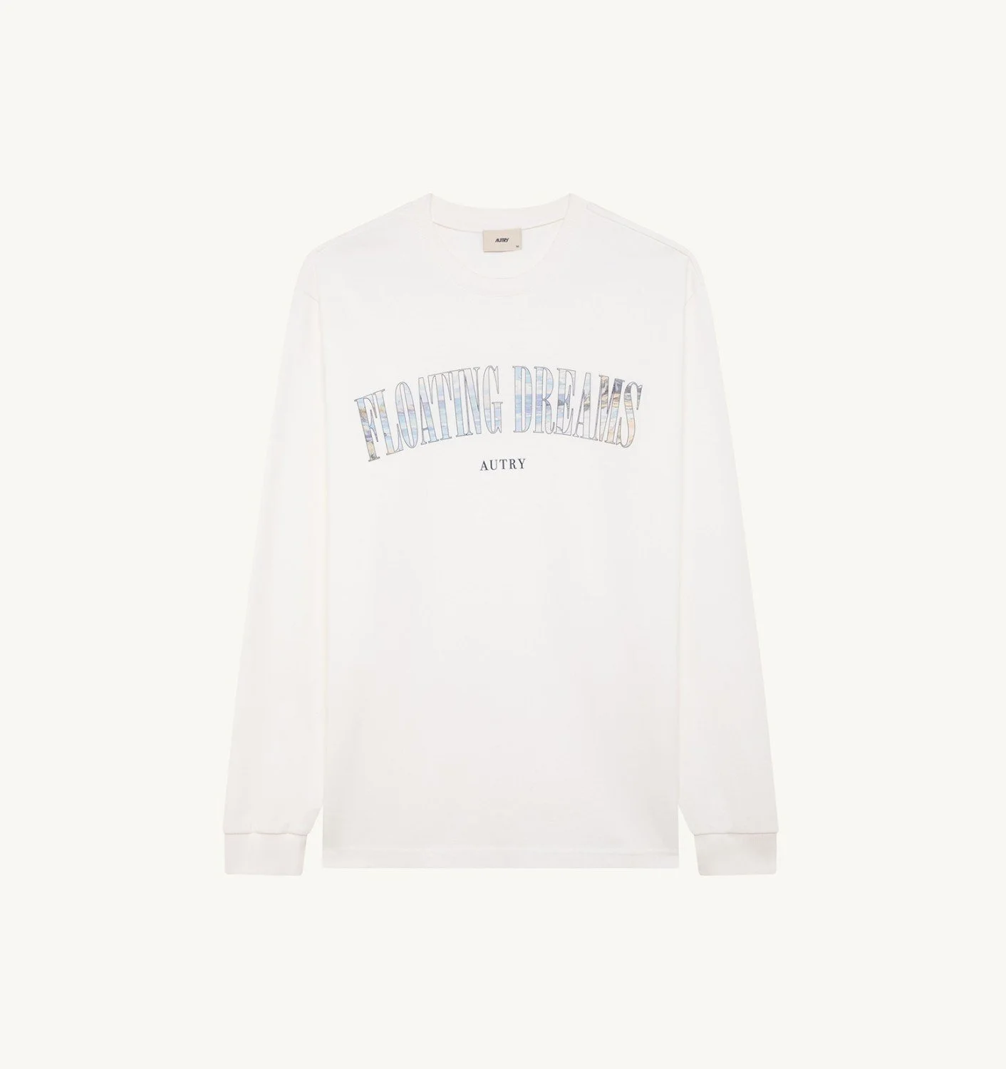 DETAILS: - 100% cotton - Unisex - Long sleeve crew neck sweater in heavy jersey - Ribbed collar - Color matched Autry logo patch - Floating dreams water print - Loose fit The model is 1.86 m tall and wears size L. The model is 1.77 m tall and wears size M.