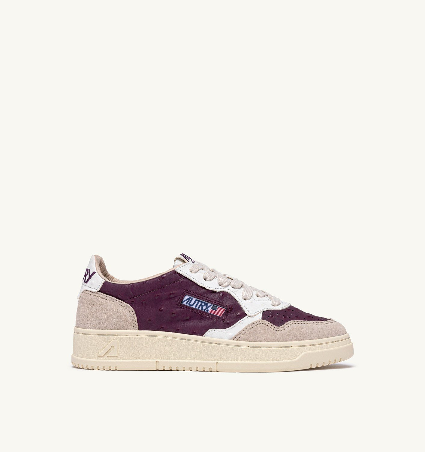 This Medalist sneakers is the quintessential everyday essential with Autry's typical attitude. This design combines 1980s tennis inspiration with premium materials and dynamic shapes, offering versatility for various looks while ensuring excellent comfort. This women’s sneakers is crafted from white and burgundy leather, enriched with a unique texture and finished with beige suede inserts. The micro-perforated toe ensures excellent breathability. Logo details on the heel, a stitched label on the tongue, and a jacquard logo on the side add a touch of authenticity to the look. SPECIFICATIONS: - Upper in suede and leather. - Micro-perforated toe. - Flat laces in cotton. - Embroidery label detailing seamed at the tongue. - Padded collar. - Leather and cotton terry lining. - 2 cm-high raised sockliner in leather. - Rubber sole. - Height of sole: 2.5-3.5 cm. - Personalized shoe bag in fabric. SPECIFICATIONS: Upper: 80% leather, 20% suede Lining: 40% leather, 50% cotton terry, 10% nylon Sole: 100% rubber