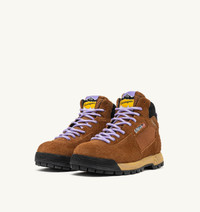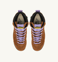 Malga Courmayeur is the latest Winter Boot style designed by Autry. With its alpine heritage and retro vibe, this design celebrates outdoor adventures, snow sports, and the apres-ski lifestyle. Inspired by Courmayeur, one of the Italy’s most enchanting mountain destinations, this design features a unique, stylish aesthetic. This hiking boot is crafted with a sturdy sole and a lugged tread, equipped with a comfortable Alpha Skin membrane that is waterproof, breathable, and windproof. The upper is made of brown suede, with tone-on-tone Cordura nylon side panels and tongue, while the collar is crafted from black nubuck leather. The two-tone tubular top laces ensure maximum durability. Branded details on the heel, tongue, and sides, along with the shoe model name, add an unmistakable touch of authenticity, while the reinforced heel provides superior protection. SPECIFICATIONS: - Suede and Cordura nylon upper. - Tubular top laces. - Logo label seamed at the tongue. - Padded ankle collar. - Leather and cotton terry lining. - Reinforced heel. - 2cm-high raised sockliner in leather. - Rubber sole. - Height of sole: 2.5-3.5 cm. - Personalize shoe bag in fabric. COMPOSITION: Upper: Suede 83%; Cordura Nylon 15%; Polyester Webbing 2% Lining: Pig Skin 40%; Waterproof Membrane 60% Sole: Phylon 60%; Rubber 40%