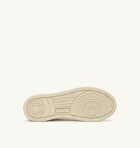 Med-Way is Autry’s new model—an evolution of the classic Medalist, distinguished by its slightly higher collar. Crafted from soft ivory white leather with branded details on the side and tongue, this women’s sneakers captures the brand’s ‘80s tennis spirit and reinterprets it with streetwear proportions for a fresh take on style and comfort. Updated with modern proportions and premium materials, it delivers maximum comfort thanks to the perforated toe designed for enhanced breathability, and the rubber sole that supports every step. Standout features include the tone-on-tone sole, padded ankle collar in platinum color metalized leather, and refined crackle-effect leather inserts on the heel for a look that’s always ahead of the curve. SPECIFICATIONS: - Upper in leather. - Micro-perforated toe. - Flat laces in cotton. - Logo label detailing seamed at the tongue. - Padded collar. - Leather and cotton terry lining. - 2 cm-high raised sockliner in leather. - Rubber sole. - Height of sole: 2.5-3.5 cm. - Personalized shoe bag in fabric. SPECIFICATIONS: Upper: 100% leather Lining: 40% leather, 50% cotton terry, 10% nylon Sole: 100% rubber