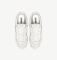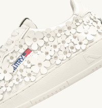 Autry presents Bloom, the new capsule collection celebrating femininity in all its shades. The silhouettes of the brand's most iconic sneakers are reimagined with sophisticated details and unexpected textures: from velvet to laminated leather, from nubuck leather to suede. Each style reveals a distinctive personality, made unique by romantic floral embroidery, sparkling sequins and crystals, bold graphic micro-studs, or oversized bows. Every sneaker becomes a statement of style—a genuine, free expression of self. SPECIFICATIONS: - Upper in patent leather. - Flat laces in cotton. - Embroidery label detailing seamed at the tongue. - Jacquard logo. - Padded collar. - Leather and cotton terry lining. - 2 cm-high raised sockliner in leather. - Rubber sole. - Height of sole: 2.5-3.5 cm. - Personalized shoe bag in fabric. COMPOSITIONS: Upper: 100% patent leather Lining: 40% leather, 50% cotton terry, 10% nylon Sole: 100% rubber