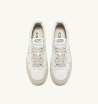 Reimagined with modern proportions and high quality materials, Autry's Medalist sneakers brings a contemporary twist to '80s tennis shoes. This women's sneakers is crafted in soft white leather with a supple, genuine look and feel, enriched with beige suede panels that lend the design a distinctive finish. The white leather heel tab is branded with the Autry logo. SPECIFICATIONS: - Leather and suede upper - Perforated toe - Flat cotton laces - Label sewn on tongue - Padded ankle collar - Lined in leather and cotton terry - 2 cm leather insole - Rubber sole - Height of sole: 2,5-3,5 cm. - Fabric dust bag. COMPOSITION: Upper Material: 70% cow leather; 20% cow suede leather; 10% nylon Lining: 40% pigskin; 50% towel; 10% nylon Outsole: 100% rubber