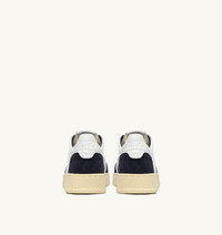 Autry Medalist reimagines 1980s tennis style, blending heritage vibes with a clean, modern aesthetic. Characterized by an essential design, it is the perfect everyday sneaker thanks to its timeless and versatile mood, ensuring everyday comfort while combining classic style and functionality. This women's sneaker is made from soft white leather with an authentic look and finished with blue suede overlays for a bold tactile and graphic mix. The leather heel detail, the tongue, and the jacquard side patch are all personalized with the Autry logo for an added touch of authenticity. SPECIFICATIONS: - Upper in suede and leather. - Micro-perforated toe. - Flat cotton laces. - Embroidery label detailing seamed at the tongue. - Padded ankle collar. - Leather and cotton terry lining. - 2 cm-high raised sockliner in leather. - Sole in rubber. - Height of sole: 2.5-3.5 cm. - Personalized shoe bag in fabric. COMPOSITION: Upper: 80% leather, 20% suede Lining: 40% leather, 50% cotton terry, 10% nylon Sole: 100% rubber
