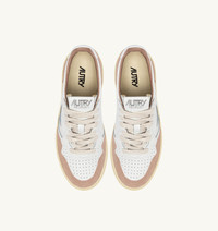 Autry Medalist reimagines 1980s tennis style, blending heritage vibes with a clean, modern aesthetic. Defined by its essential design, it’s the perfect everyday sneaker with timeless, versatile feel, delivering all-day comfort with a mix of classic style and functionality. This women’s sneaker is made from soft white leather with an authentic look and finished with pink suede overlays for a bold tactile and graphic mix. The leather heel detail, the tongue, and the jacquard side patch are all personalized with the Autry logo for an added touch of authenticity. SPECIFICATIONS: - Upper in suede and leather. - Micro-perforated toe. - Flat cotton laces. - Embroidery label detailing seamed at the tongue. - Padded ankle collar. - Leather and cotton terry lining. - 2 cm-high raised sockliner in leather. - Rubber sole. - Height of sole: 2.5-3.5 cm. - Personalized shoe bag in fabric. COMPOSITION: Upper: 80% leather, 20% suede Lining: 40% leather, 50% cotton terry, 10% nylon Sole: 100% rubber