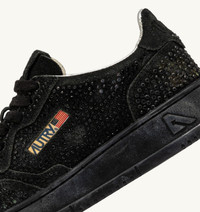 Autry presents Bloom, the new capsule collection celebrating femininity in all its shades. The silhouettes of the brand's most iconic sneakers are reimagined with sophisticated details and unexpected textures: from velvet to laminated leather, from nubuck leather to suede. Each style reveals a distinctive personality, made unique by romantic floral embroidery, sparkling sequins and crystals, bold graphic micro-studs, or oversized bows. Every sneaker becomes a statement of style—a genuine, free expression of self. SPECIFICATIONS: - Suede and micro-rhinestone upper. - Flat laces in cotton. - Embroidery label detailing seamed at the tongue. - Jacquard logo. - Padded collar. - Leather and cotton terry lining. - 2 cm-high raised sockliner in leather. - Rubber sole. - Height of sole: 2.5-3.5 cm. - Personalized shoe bag in fabric. COMPOSITIONS: Upper: 100% suede with rhinestones Lining: 40% leather, 50% cotton terry, 10% nylon Sole: 100% rubber