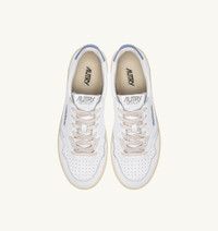 This Medalist sneakers is the quintessential everyday essential with Autry's typical attitude. The design blends 1980s tennis inspiration with premium materials and dynamic lines, making it a versatile choice that delivers great comfort. This women’s sneakers is crafted from soft, naturally textured white leather, finished with micro-perforations at the toe for enhanced breathability. Light blue leather accents on the outer side and heel are customized with the Autry logo. SPECIFICATIONS: - Upper in leather. - Micro-perforated toe. - Flat laces in cotton. - Embroidery label detailing seamed at the tongue. - Padded collar. - Leather and cotton terry lining. - 2 cm-high raised sockliner in leather. - Rubber sole. - Height of sole: 2.5-3.5 cm. - Personalized shoe bag in fabric. SPECIFICATIONS: Upper: 100% leather Lining: 40% leather, 50% cotton terry, 10% nylon Sole: 100% rubber
