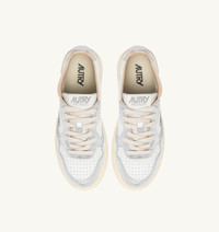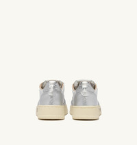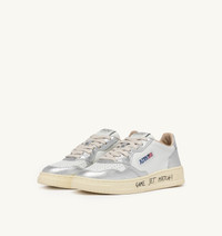 Elevate your everyday style with Autry's Medalist. This women's athletic shoe is crafted from white leather and finished with silver inserts creating a bold and striking graphic contrast. The rubber sole instantly evokes the spirit of tennis, featuring a personalized "Game Set Match!" lettering in a bold graffiti style. Autry's typical side logo insert adds the finishing touch to the design. SPECIFICATIONS: - Upper in leather. - Micro-perforated toe. - Flat cotton laces. - Embroidery label detailing seamed at the tongue. - Padded collar. - Leather, terry and nylon lining. - 2-cm raised sockliner in leather. - Rubber sole. - Height of sole: 2.5-3.5 cm. - Personalize shoe bag in fabric. COMPOSITION: Upper: 100% leather Lining: 40% leather, 50% cotton terry, 10% nylon Sole: 100% rubber