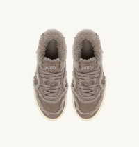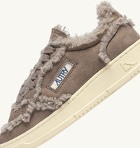 Autry Medalist reinterprets classic 80s tennis style, blending heritage vibes with a sleek, contemporary aesthetic. Defined by its clean design, it’s the perfect everyday sneaker thanks to its timeless, versatile mood, offering daily comfort while combining enduring style with functionality. This Mutton version is crafted in suede and lined with warm shearling, making it ideal for getting through even the coldest winter days. SPECIFICATIONS: - Suede upper. - Perforated toe. - Flat cotton laces. - Logo label with embroidery sewn onto the tongue. - Padded ankle collar. - Shearling lining. - Shearling insole. - Rubber sole. - Height of sole: 2.5–3.5 cm. - Personalized shoe bag in fabric. COMPOSITION: Upper: 100% suede Lining: 100% shearling Sole: 100% rubber