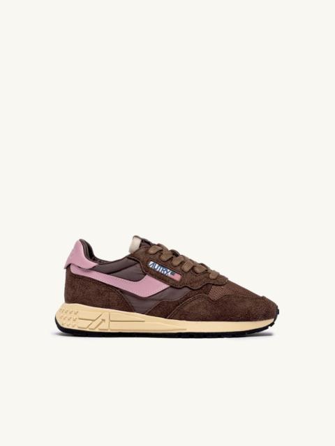 Reelwind sneakers offer the technical edge of a performance shoe with the unmistakable style of the Autry aesthetic. This women's athletic shoe is crafted from beige nylon and is reinforced by suede inserts that create a dynamic design. Details brown pony hair effect bring a unique touch of originality. Lightweight and streamlined, it is completed by a rubber and Phylon running sole that softens the impact on the road or on the pitch. SPECIFICATIONS: - Suede and nylon upper. - Flat cotton laces. - Embroidery label detailing seamed at the tongue. - Padded ankle collar. - Leather, terry and nylon lining. - 2cm-high raised sockliner in leather. - Rubber sole. - Height of sole: 2.5-3.5 cm. - Personalized shoe bag in fabric. COMPOSITION: Upper: 60% nylon, 40% leather Lining: 40% leather, 50% cotton terry, 10% nylon Sole: 60% Phylon, 40% rubber