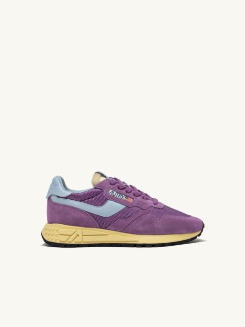 Reelwind sneakers blend Autry’s signature style with elements inspired by the world of running. Featuring a sleek silhouette and an ’80s-inspired retro design, they offer lightness, flexibility, and optimal grip. This women’s sneaker is made from a mix of white nylon and suede with leopard-print side and heel inserts for a refined, original effect. Designed for a dynamic lifestyle, it features a performance-driven construction that ensures maximum freedom of movement. Logo details on the tongue and outer side add an extra touch of authenticity, while the rubber outsole with a raised tread is personalized with star motifs and the A-arrow, a modern graphic reinterpretation of the logo. SPECIFICATIONS: - Upper in nylon, leather, suede, and mesh. - Mesh toe. - Flat cotton laces. - Label detailing at tongue. - Padded ankle collar. - Leather, nylon and cotton terry lining. - 2 cm-high raised sockliner in leather. - Running sole. - Height of sole: 2.5-3.5 cm. - Personalized shoe bag in fabric. COMPOSITION: Upper: 40% leather, 50% nylon, 10% mesh (100% PL) Lining: 40% leather, 50% cotton terry, 10% nylon Sole: 60% Phylon, 40% rubber