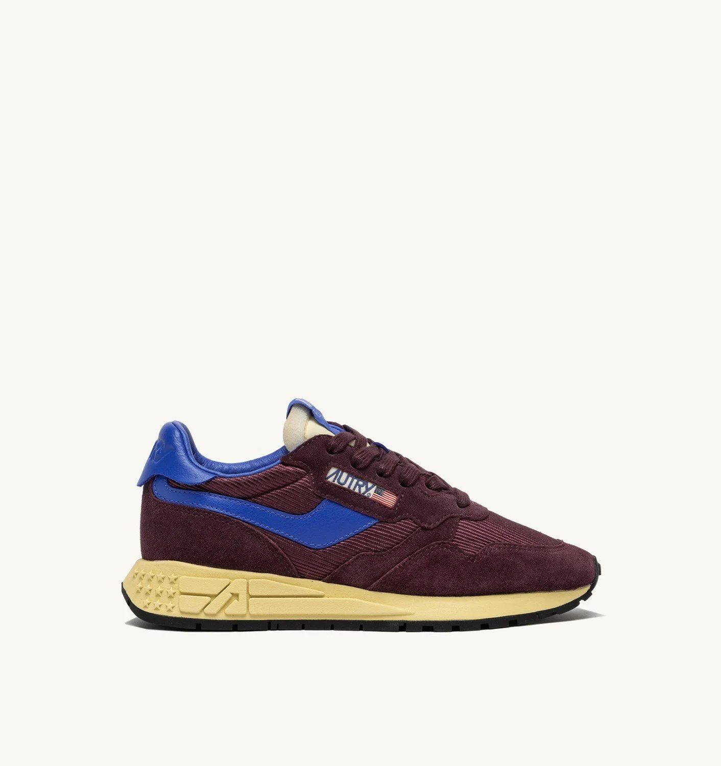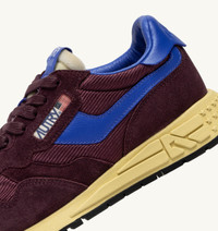 Innovative, light and extremely flexible, Reelwind Autry sneakers draw inspiration from the running world. This women’s design is made from a mix of suede and ribbed mesh in purple, with blue leather side panels. Designed for an active lifestyle, it features a sleek silhouette and performance construction for maximum freedom of movement. The rubber sole with an embossed tread is personalized with a star pattern and an A-arrow that offers a graphic and modern reinterpretation of the logo. SPECIFICATIONS: - Upper in leather mesh and suede. - Flat cotton laces. - Flat cotton laces. - Padded collar. - Nylon, leather and cotton terry lining. - 2cm-high raised sockliner in leather. - Running sole. - Height of sole: 2.5-3.5 cm. - Personalize shoe bag in fabric. COMPOSITIONS: Upper: 20% leather, 25% suede, 15% mesh, 40% nylon Lining: 40% leather, 50% cotton terry, 10% nylon Sole: 60% Phylon, 40% rubber