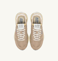 Sporty performance meets urban lifestyle in the women's Reelwind sneaker. This sleek and dynamic design captivates with its updated panel construction, blending tonal nylon and suede with brown cracked leather inserts. The combination of colors and textures adds contrast to the clean and lightweight profile, supported by a white Phylon running sole that offers flexibility and grip with every step. Featuring details like its logo in with a 3D star motif, and the distinctive A-arrow, paying homage to the brand's history. SPECIFICATIONS: - Leather, suede and nylon upper. - Perforated toe. - Flat cotton laces. - Label sewn on tongue. - Padded ankle collar. - Lined in leather and cotton terry. - 2 cm leather insole. - Rubber sole. - Height of sole: 2.5-3.5 cm. - Fabric dust bag. COMPOSITION: Upper Material: 20% cracked cow leather, 20% suede, 5% cow leather, 55% nylon Lining:: 40% pigskin, 50% towel, 10% nylon Outsole: 60% Phylon, 40% Rubber
