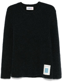 ribbed sweater Highlights - Dark grey - Virgin wool blend - Ribbed knit - Crew neck - Long sleeves - Logo patch to the side - Straight hem - When buying this unisex item, keep in mind that it is graded in standard men's sizing. Made in Italy Composition Virgin Wool 77%, Nylon 22%, Elastane 1%