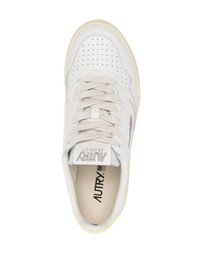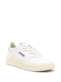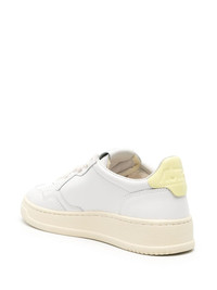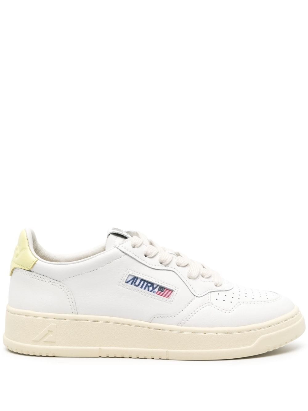 Medalist Low sneakers Autry's white and yellow Medalist Low sneakers are a re-release of an original '80s design. Theyâre crafted from leather and branded from heel to tongue â the American flag logo is a signature ode to the brandâs roots. Highlights - White/lemon yellow - Calf leather - Panelled design - Logo patch to the side - Logo patch at the tongue - Contrasting branded heel counter - Logo at the sole - Round toe - Perforated toebox - Front lace-up fastening - Padded ankle - French terry lining - Branded insole - Flat rubber sole - This piece comes complete with a protective dust bag. Imported Composition Sole: Rubber 100% Outer: Calf Leather 100% Lining: Fabric 100%, Calf Leather 100% SIZE & FIT Measurement HEEL 1.18 in(3 cm) Sole height 0.78 in(2 cm)