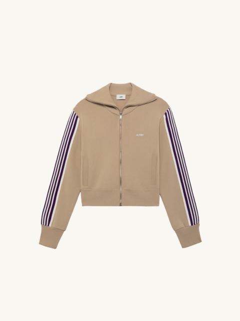 DETAILS: - 65% viscose 35% polyamide - Metal zip with logo puller - Side striped band in contrast - Autry embroidery logo at chest - Regular fit The model is 1.75 m tall and wears size M.