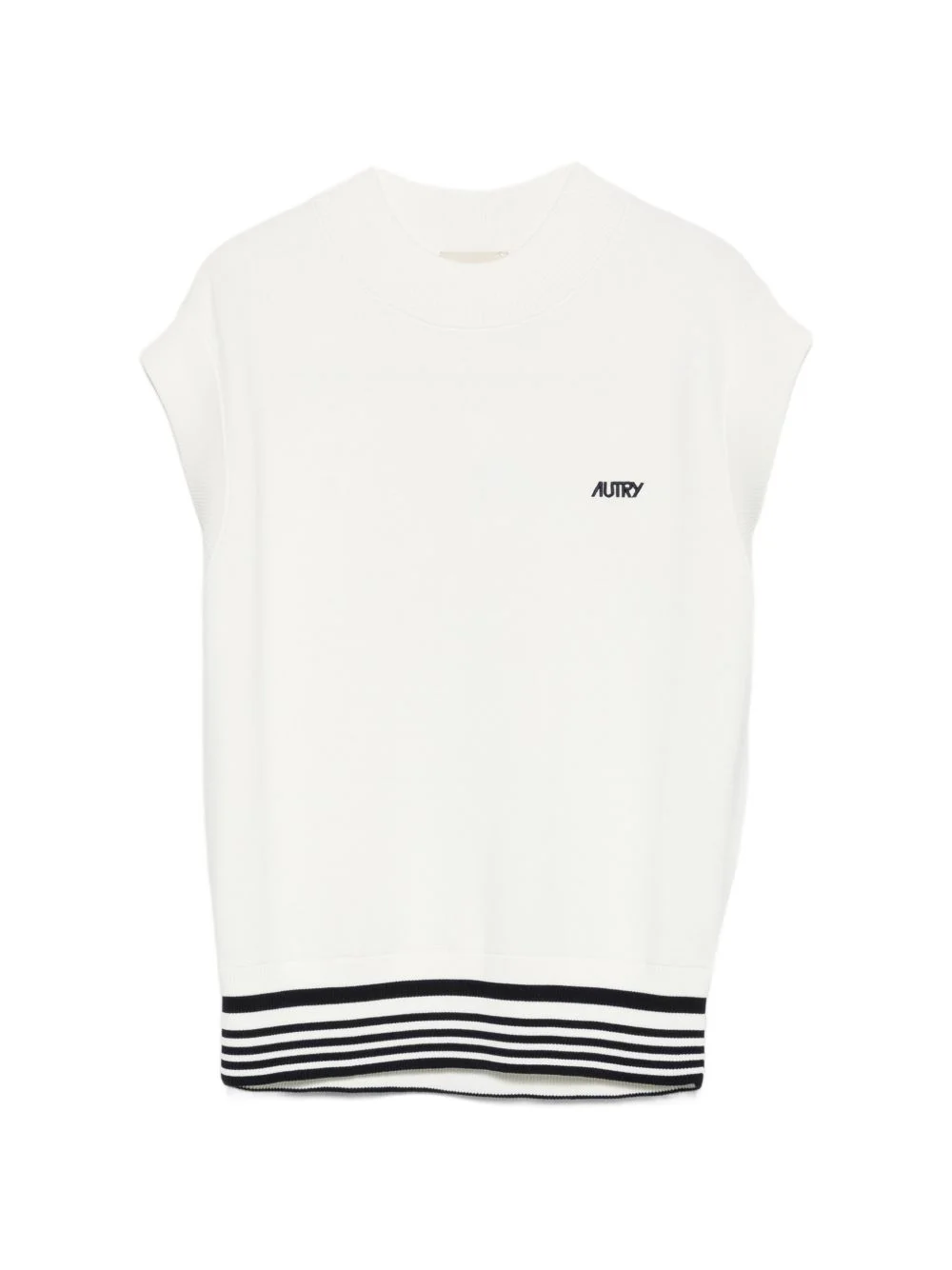 stripe-detailed knitted vest Highlights - White - Striped hem - Knitted construction - Round neck - Sleeveless Imported Composition Viscose 65%, Nylon 35% Washing instructions Hand Wash