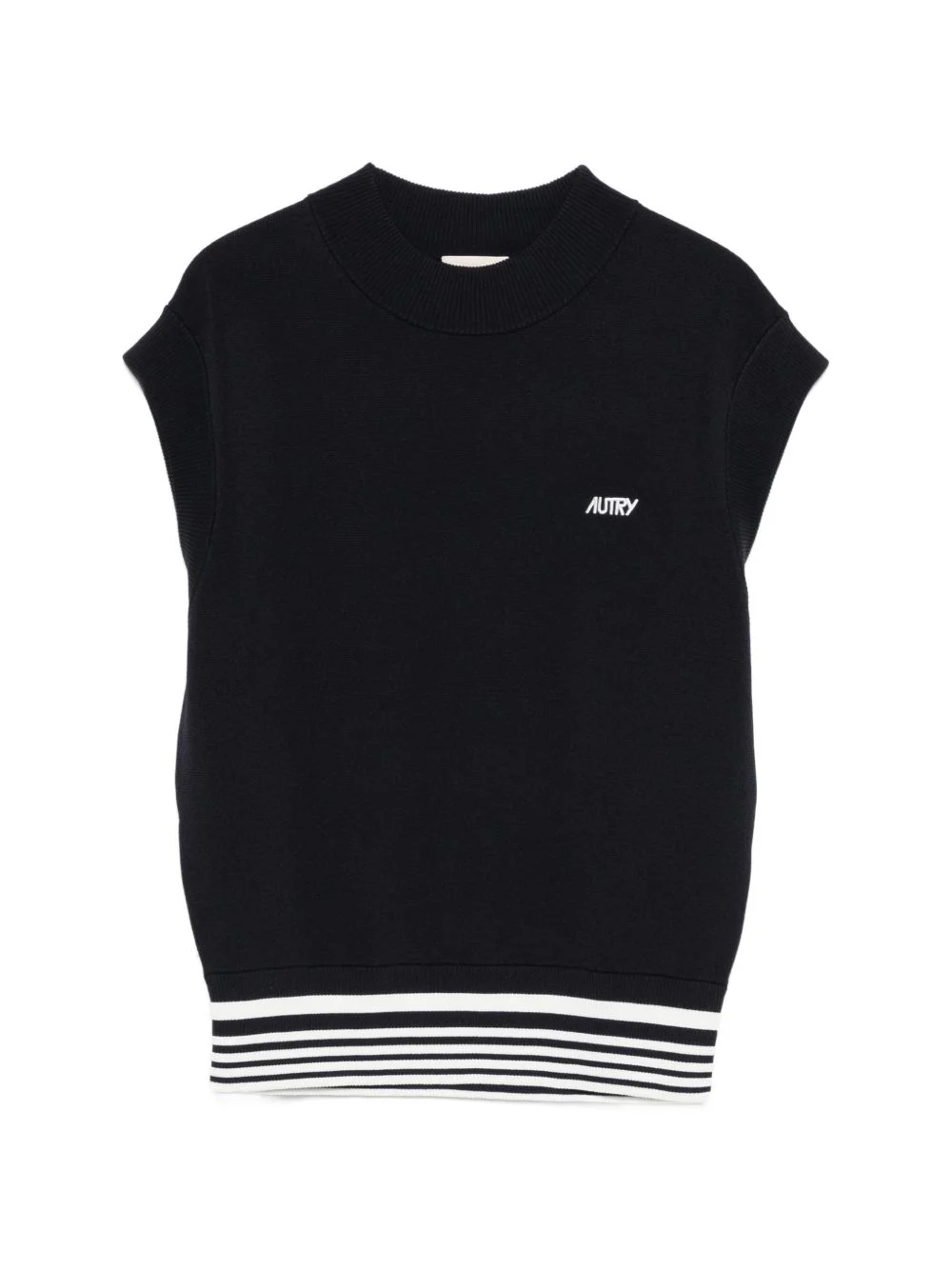 stripe-detailed vest Highlights - Blue - Ribbed knit - Round neck - Sleeveless - Striped hem - Logo detail Imported Composition Viscose 65%, Nylon 35% Washing instructions Hand Wash