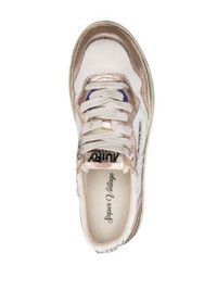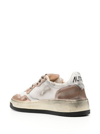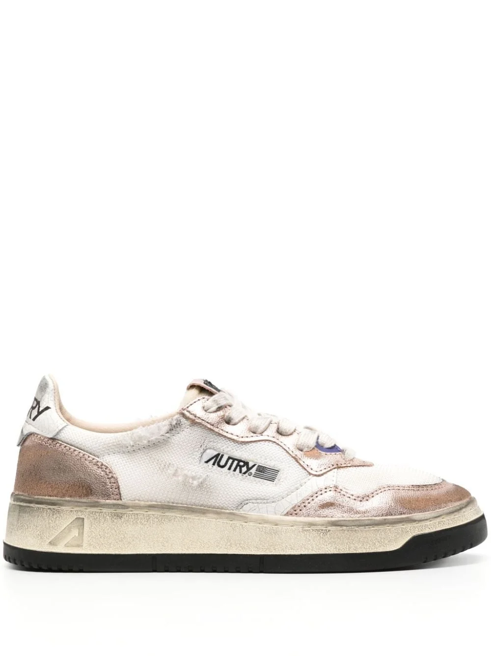 Super Vintage distressed sneakers Highlights - White/rose gold - Calf leather - Distressed finish - Mesh panelling - Metallic-effect panels - Logo patch to the side - Logo patch at the tongue - Branded heel counter - Logo at the sole - Round toe - Front lace-up fastening - French terry lining - Branded insole - Chunky rubber sole Imported Composition Sole: Rubber 100% Outer: Calf Leather 100%, Fabric 100% Lining: Fabric 100%, Calf Leather 100% SIZE & FIT Measurement HEEL 1.57 in(4 cm) Sole height 0.98 in(2.5 cm)