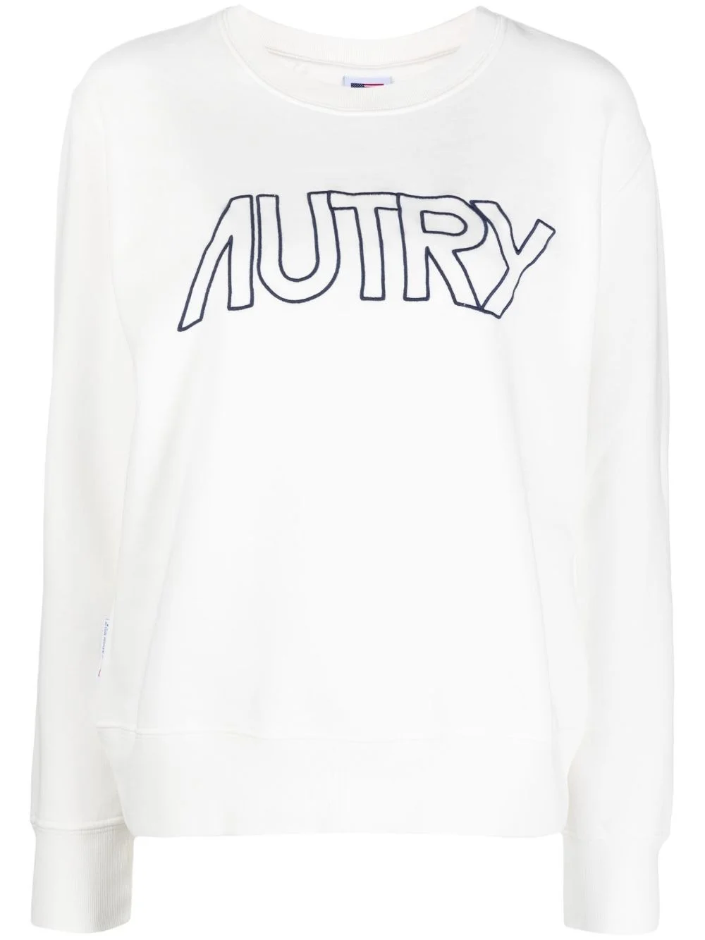 logo-embroidered cotton T-shirt Highlights - Optical white/prussian blue - Cotton - Jersey texture - Embroidered logo to the front - Round neck - Long sleeves - Straight hem Made in Italy Composition Cotton 100%