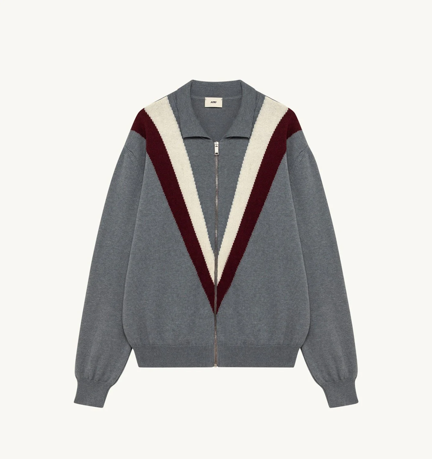 DETAILS: - 55% wool 45% organic cotton - Unisex - Full zip opening with logo puller - Regular fit - Gauge 12 double yarn The model is 1.75 m tall and wears size M. The model is 1.88 m tall and wears size L.