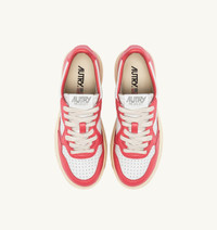A classic Medalist sneakers featuring bold color combinations that exude strong personality. This women's style validates Autry's original spirit inspired by 80s tennis style, updated with streetwear proportions for a new experience of style and comfort. Made of soft leather with an authentic look, this design comes in a bold color block pattern in white and pink, with a natural rubber sole and pink tread marking the rhythm of your steps. SPECIFICATIONS: - Color-block leather upper. - Micro-perforated toe. - Flat cotton laces. - Embroidery label detailing seamed at the tongue. - Padded collar. - Leather and cotton cotton terry lining. - 2-cm raised sockliner in leather. - Sole in rubber with contrast tread. - Height of sole: 2.5-3.5 cm. - Personalize shoe bag in fabric. COMPOSITION: Upper: 100% leather Lining: 40% leather; 50% terry; 10% nylon Sole: 100% rubber
