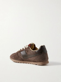 Windspin leather-trimmed brushed-suede sneakers Chocolate