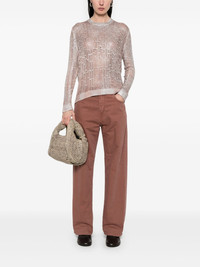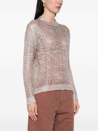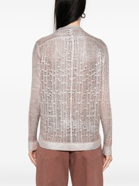 foil-print sweater Highlights - Silver-tone - Ribbed cuffs and hem - Crew neck - Openwork areas Made in Italy Composition Cashmere 100% SIZE & FIT Model measurements Height 5 ft 10 in(1.78 m) Bust/Chest 33.46 in(85 cm) Hips 36.22 in(92 cm) Waist 23.22 in(59 cm) FittingInformation Designed to be unstructured, offering a loose fit throughout Made with a midweight knit, this piece offers some stretch