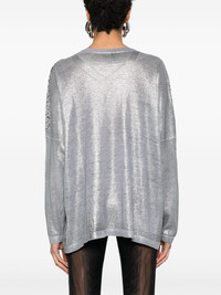 crystal-embellished V-neck jumper Highlights - Medium grey - Linen-cotton blend - Fine knit - Metallic finish - Crystal embellishment - Ribbed v-neck - Drop shoulder - Long sleeves - Ribbed cuffs and hem - Straight hem Made in Italy Composition Linen/Flax 77%, Cotton 23% SIZE & FIT Model measurements Height 5 ft 9 in(1.76 m) Bust/Chest 31.88 in(81 cm) Hips 35.43 in(90 cm) Waist 24.8 in(63 cm) FittingInformation Designed to be unstructured, offering a loose fit throughout Made with a midweight knit, this piece offers some stretch This piece fits true to size – take your usual size