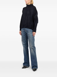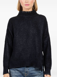 mock-neck sparkle knit sweater Highlights - Blue - Mock neck - Speckled effect - Long sleeves - Side slits Made in Italy Composition Wool 95%, Silk 5% Washing instructions Read Manufacturer Guidelines