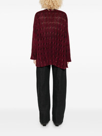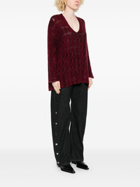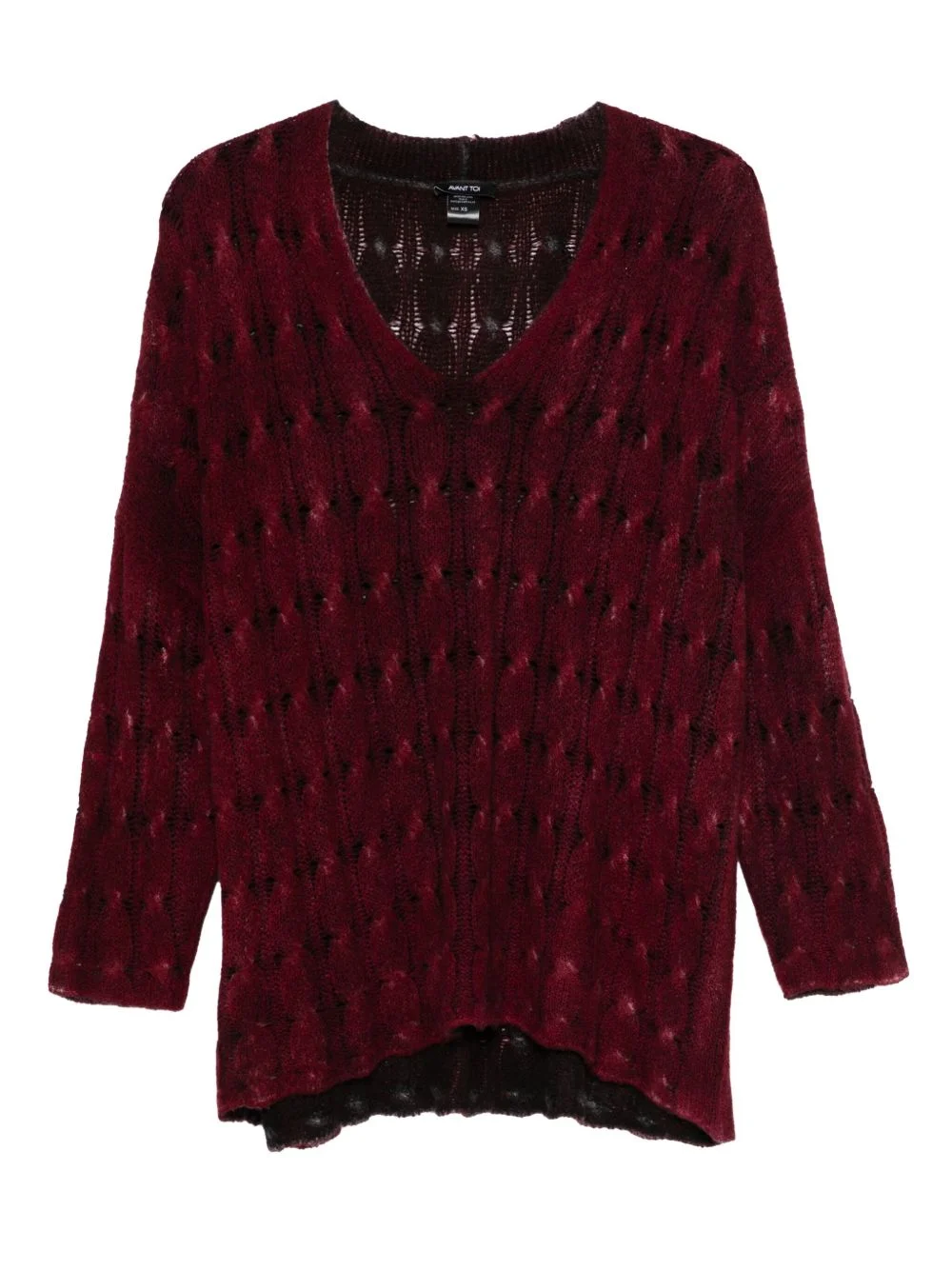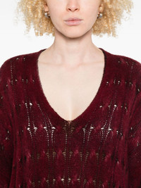 open-knit jumper Highlights - Burgundy - V-neck - Long sleeves Imported Composition Fabric 100% SIZE & FIT Model measurements Height 5 ft 9 in(1.74 m) Bust/Chest 34.64 in(88 cm) Hips 36.61 in(93 cm) Waist 26.37 in(67 cm) Washing instructions Read Manufacturer Guidelines