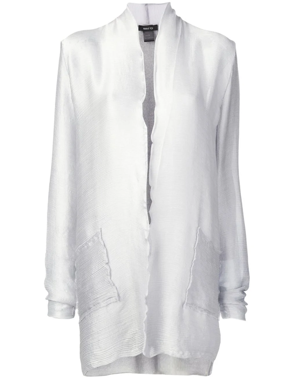 plisse cardigan Grey silk-cashmere blend plisse cardigan from Avant Toi featuring an open front, long sleeves, front pockets, finished edges, a mid-length and a knitted style back. Made in Italy Composition Cashmere 70%, Silk 30% SIZE & FIT Model measurements Height 5 ft 9 in(1.76 m) Bust/Chest 33.07 in(84 cm) Hips 35.03 in(89 cm) Waist 24.4 in(62 cm) Washing instructions Dry Clean Only