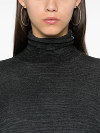 ribbed sweater Highlights - Black - Cashmere-silk blend - Stretch-design - Ribbed detailing - Knitted construction - Roll neck - Long sleeves - Straight hem Made in Italy Composition Cashmere 64%, Silk 30%, Polyester 6% SIZE & FIT Model measurements Height 5 ft 10 in(1.78 m) Bust/Chest 33.85 in(86 cm) Hips 36.61 in(93 cm) Waist 26.77 in(68 cm) FittingInformation Designed for a relaxed fit, this piece allows for comfort and movement when worn Made with a midweight knit, this piece offers some stretch