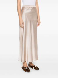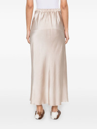 satin midi skirt Highlights - Champagne - Elasticated waistband - Ruched detailing - Flared hem Made in Italy Composition Silk 94%, Elastane 6% SIZE & FIT Model measurements Height 5 ft 10 in(1.79 m) Bust/Chest 31.88 in(81 cm) Hips 35.43 in(90 cm) Waist 23.62 in(60 cm) FittingInformation This maxi-length skirt is intended to be worn high on the waist The elasticated waist allows for a comfortable fit Made from a lightweight stretch fabric, this piece offers elasticity and flexibility when worn