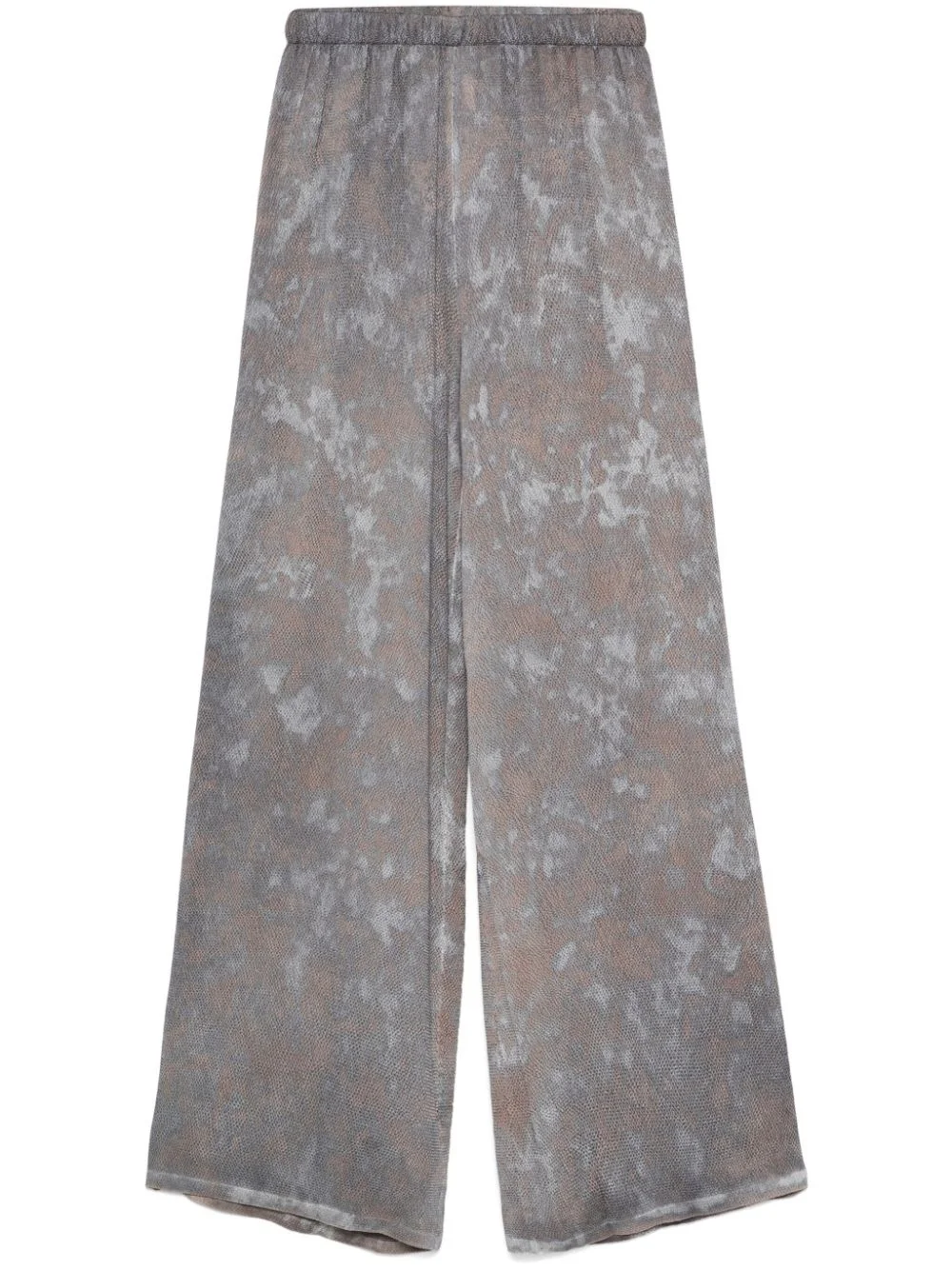 textured palazzo pants Highlights - Medium grey - Elasticated waistband - Gathered detailing - Tie-dye pattern Made in Italy Composition Silk 94%, Spandex/Elastane 6%
