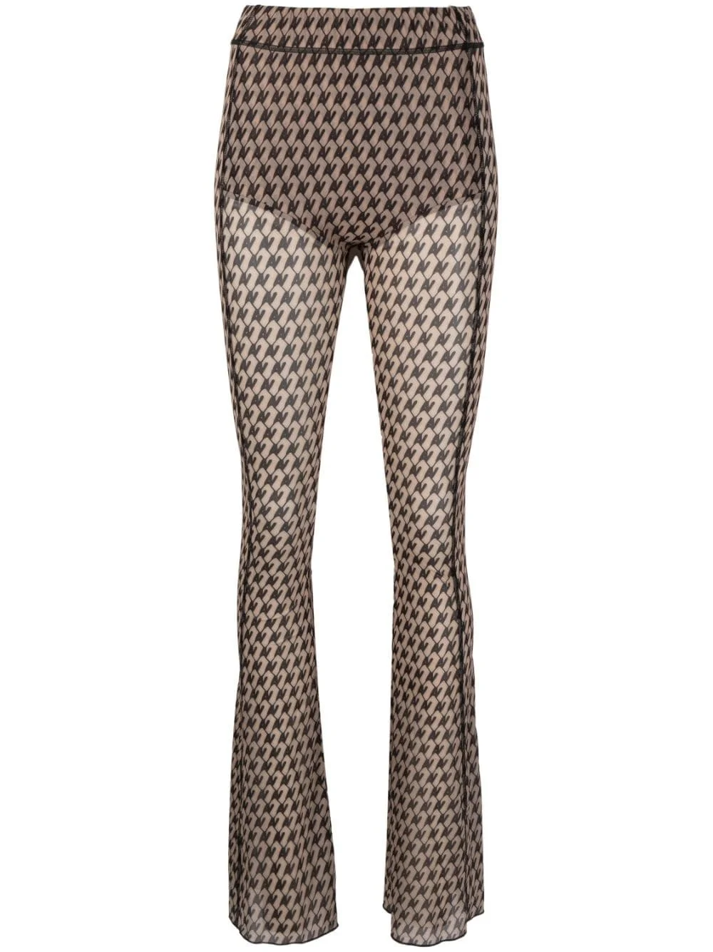 Apartment monogram-print trousers Highlights - Brown/black - Mesh detailing - Semi-sheer construction - Monogram print - High-waisted - Flared Made in Italy Composition Polyester 75%, Elastane 25%
