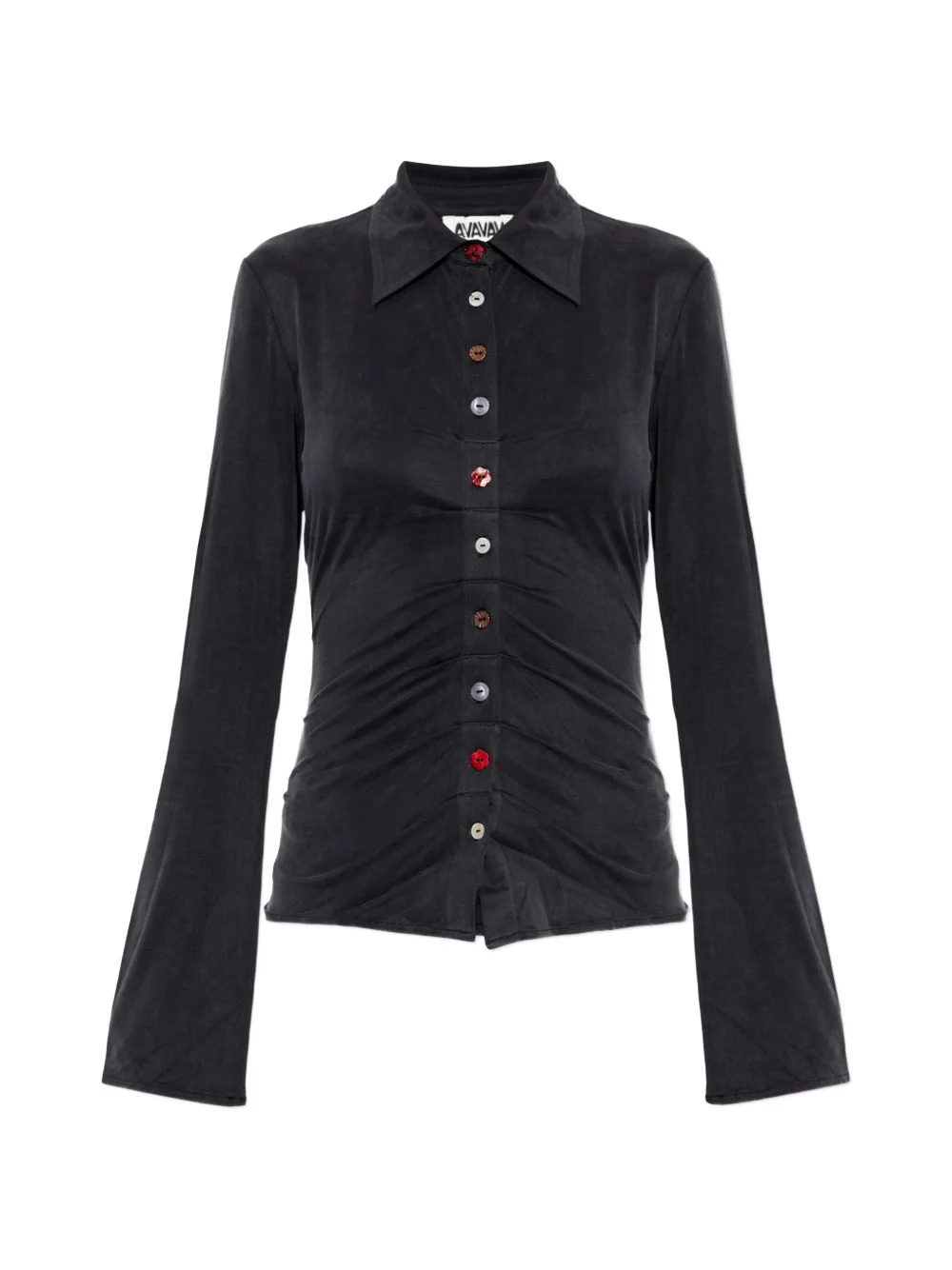 buttoned long-sleeve shirt Highlights - Black - Button fastening - Long sleeves - Fitted - Collared Imported Composition Cupro 91%, Elastane 9% Washing instructions Read Manufacturer Guidelines