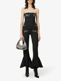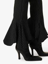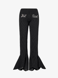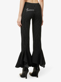 PRODUCT DETAILS - AVAVAV cotton-blend trousers - 85% cotton, 10% polyamide, 5% elastane - Slips on - Slim fit, mid-rise, flared leg, elasticated waistband, rhinestone design at front and back, stripe pattern, ruffle trim at hems - Dry clean only - Made in Italy - True to size - Size small: rise 8in / 20cm, inside leg 30in / 76cm, leg opening 16in / 41cm - Model is 5ft 10in/1.78m and wears a size small - Midweight, stretchy