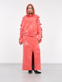 AVAVAV skirt in red, paneled cotton construction, high-waist, elasticated waistband, front slit, straight hem, maxi-length, relaxed fit. Made in Italy 100% Cotton Standard Sizing Model is 5'8" wearing size S. Bust: 31" Waist: 23.5" Hips: 34"