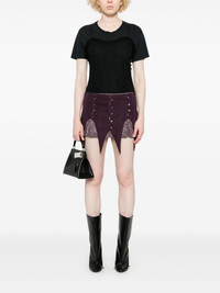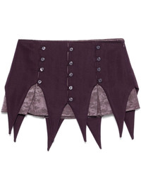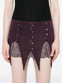 panel mini skirt Highlights - Aubergine - Panelled design - Twill weave - Floral embroidery - Concealed side zip fastening - Mid-rise - Decorative button detailing - Pleat detailing - Sash detail - Asymmetric hem - Unlined - Thigh-length Made in Italy Composition Outer: Polyester 65%, Viscose 35% Lining: Polyester 100% SIZE & FIT Model measurements Height 5 ft 9 in(1.75 m) Bust/Chest 34.64 in(88 cm) Hips 36.61 in(93 cm) Waist 26.37 in(67 cm) FittingInformation This mini-length skirt is intended to be worn low on the hips Slightly short in length; consider your own measurements Made from a midweight non-stretch fabric Washing instructions Dry Clean Only