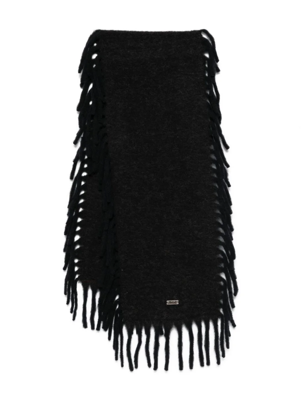 fringed scarf Highlights - Black - Fringed trim - Logo plaque Made in Italy Composition Mohair 28%, Alpaca 28%, Virgin Wool 24%, Polyamide 20% SIZE & FIT Measurement LENGTH 78.74 in(200 cm) WIDTH 23.22 in(59 cm) Washing instructions Read Manufacturer Guidelines