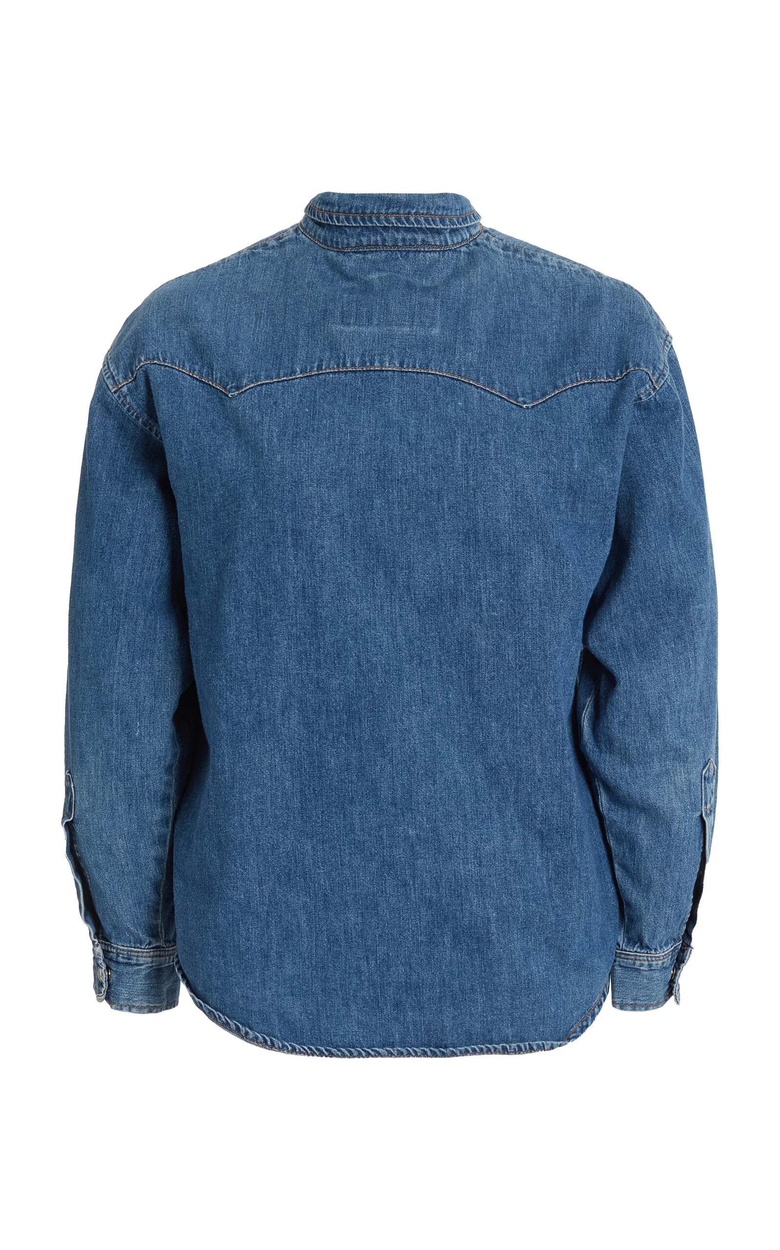 PRODUCT DETAILS - Regular fit, collared, long sleeved, back to front detail - Button Closure Through Back - Unlined - Composition: 100% Cotton - Color: blue - Dry Clean Only - Spring '25