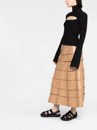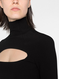 cut-out roll-neck jumper A.W.A.K.E. Mode's graphic aesthetic is showcased by this jumper. Punctuated by a rounded cut-out at the front, the fitted silhouette is balanced with elongated flared sleeves. Imported Composition Polyester 65%, Viscose 32%, Elastane 3% SIZE & FIT Model measurements Height 5 ft 9 in(1.76 m) Bust/Chest 31.49 in(80 cm) Hips 36.61 in(93 cm) Waist 24.8 in(63 cm) Washing instructions Dry Clean Only