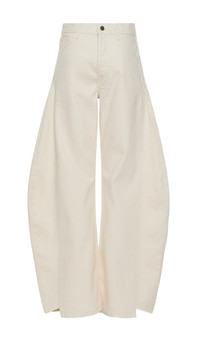 Cut in a curved, barrel silhouette, these high-waisted denim jeans offer a relaxed shape that sits cleanly at the waist. The sculpted leg introduces volume without heaviness, while the overall line remains precise and architectural. Shown here with Rinse Wash Denim Shirt Indigo. Available in acid wash, white and washed black. FIT & SIZE - Designed with a high waist and regular fit. - True to size, we recommend choosing your regular size. - Model is 181 cm / 5'11" (bust: 74 cm / 29”, waist: 61 cm / 24”, hips: 87 cm / 34½”) and is wearing size 34. PRODUCT DETAILS - 100% Cotton - Midweight material. - Button closure. - Dry clean. - Made in Paraguay.