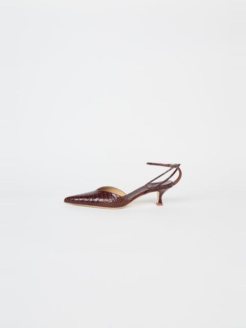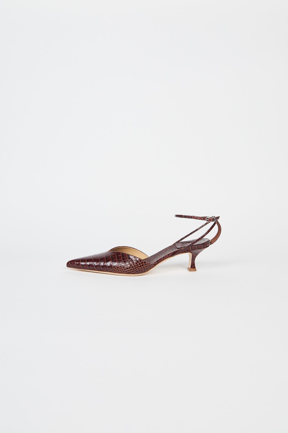 Crafted from supple Nappa leather, these pumps feature a sharply pointed toe, slender ankle strap and kitten heel. A discreet buckle fastening ensures a secure fit. Also available in white and black. FIT & SIZE - True to size, we recommend choosing your regular size. PRODUCT DETAILS - 50mm heel. - 100% Nappa Leather 100% Leather Lining - Comes with a dust bag. - Made in Italy. This product is available on a pre-order basis only. The estimated dispatch date is between the 26th of May and 30th of May.