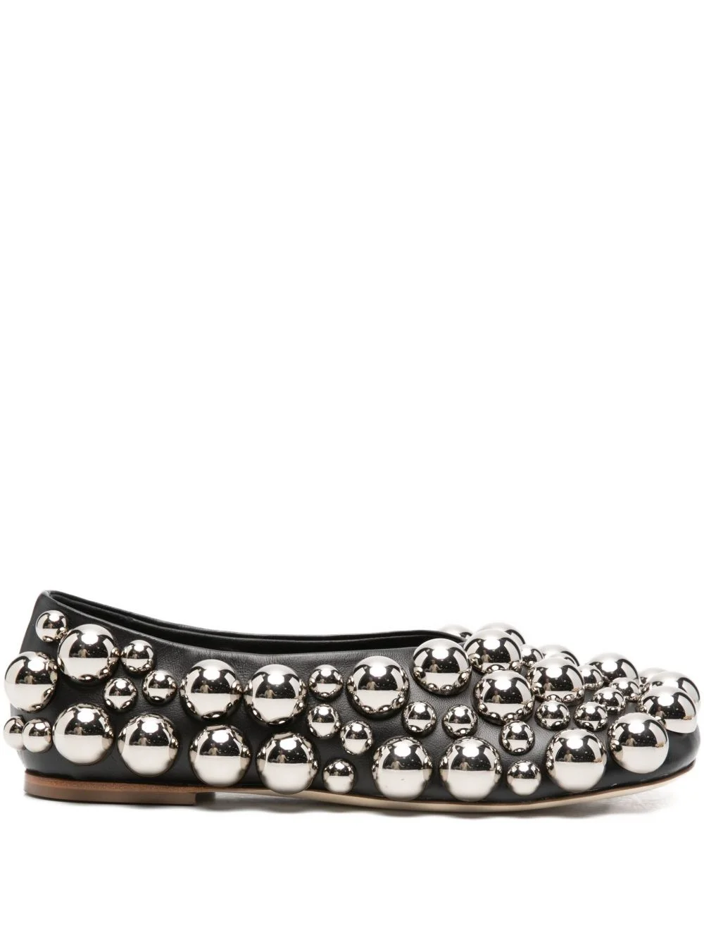Dora square-toe ballerina shoes Highlights - Black - Round embellishment - Flat sole - Slip-on style - Branded insole Made in Italy Composition Outer: Nappa Leather 100% Lining: Leather 100%, Suede 100% Sole: Rubber 100%