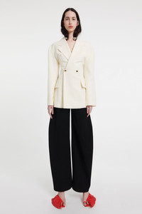 This blazer blends classic elegance with daring innovation. The traditional double-breasted front with a notched lapel reveals a striking back cutout with adjustable tie-up straps. Pair it with tailoring for a polished, sophisticated look. Shown here with Rounded Tailored Trousers Black and Delta High Tassel Red. Also available in black. FIT & SIZE - Designed with a slim fit through the waist and chest. - True to size, we recommend choosing your regular size. - Model is 177 cm / 5'9.7" and is wearing a size FR36. PRODUCT DETAILS - Fabric: 44% Viscose 29% Cotton 27% Linen; Lining: 100% Viscose - Lined. - Dry clean. - Made in Portugal.