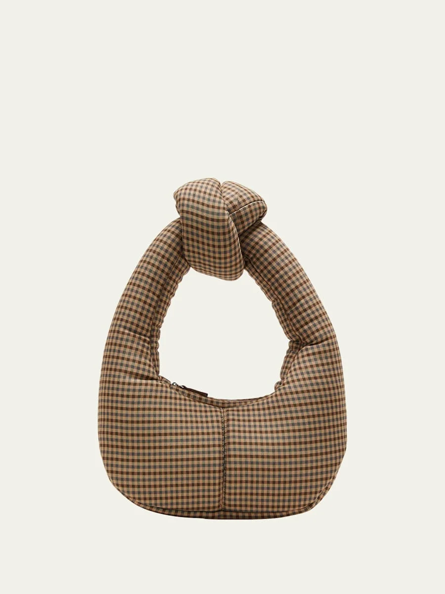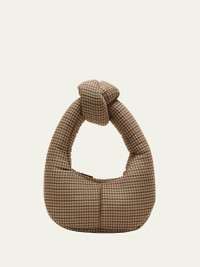 A.W.A.K.E. MODE "Mia" top handle bag in gingham cotton and faux leather (polyester) Knot padded top handle Zip top closure Exterior, leashed small top handle bag Lining: Cotton Overall, approx. 17"H x 13"W x 2.8"D Small bag, approx. 8.3"H x 7.5"W x 1.6"D Made in Italy Online Inquiries: BGS21_V5QBC| Store Inquiries: #4451466
