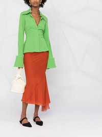 oversized cuffs ruched shirt apple green spread collar ruched detailing front button fastening long sleeves oversized cuffs rear tie fastening Imported Composition Polyester 100% SIZE & FIT Model measurements Height 5 ft 11 in(1.8 m) Bust/Chest 31.49 in(80 cm) Hips 35.82 in(91 cm) Waist 24.8 in(63 cm) FittingInformation This piece fits true to size. We recommend you get your regular size Cut for a slim fit Made with a mid-weight non-stretch fabric Washing instructions Hand Wash