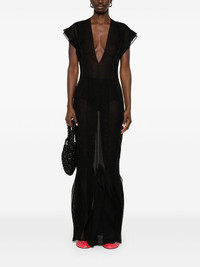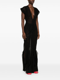 panelled organza maxi dress Highlights - Black - Rear zip fastening - Plunging v-neck - Short sleeves Made in United Kingdom Composition Cotton 100% SIZE & FIT Model measurements Height 5 ft 10 in(1.77 m) Bust/Chest 32.28 in(82 cm) Hips 35.03 in(89 cm) Waist 25.19 in(64 cm) FittingInformation Designed for a close fit throughout Made from a midweight non-stretch fabric