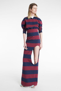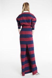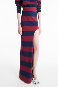 Cut to a slim silhouette, this high-rise maxi skirt features a sharp cut-out detail on the side and a high back split. Made to slip on with ease, it brings a subtle edge to streamlined dressing. Shown here with Twisted Collar Rugby Jersey Burgundy Navy. Also available in emerald green navy and black. FIT & SIZE - Designed with a slim fit and maxi hem. - True to size we recommend choosing your regular size. - Model is 181 cm / 5'11" and is wearing a size XS. PRODUCT DETAILS - 100% Cotton - Pull-on style. - Unlined. - Dry clean. - Made in Portugal.
